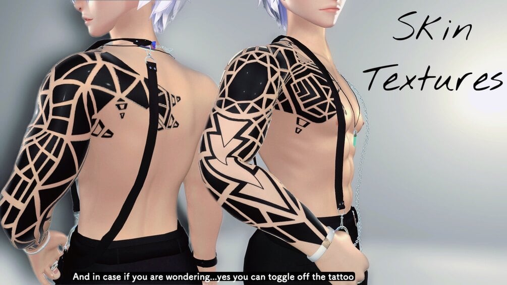 • 5 Hair material swaps with Hue shifts, Tattoo On/Off, Tattoo Hue, 3 Suit materials, 4 Shoe Materials, Eye Hue